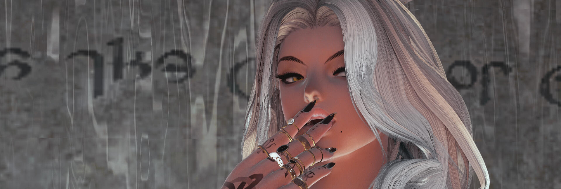 ■ Her hands are always covered, especially the palms of her hands. Through gloves or other types of wrappings, even some that look close to her skintone are constantly worn.
